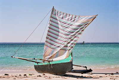 Avec stupéfaction il se rendit compte qu'il avait retrouvé la terre ferme et que sa pirogue s'était échouée sur une plage . Le filet n'était plus qu'un fatras de fils déchirés . Le poisson monstrueux avait disparu . Il apprit plus tard que les courants l'avaient ramené au Nord de l'île de Nosy Ve .C'est à ce moment qu'il entendit des cris familiers :